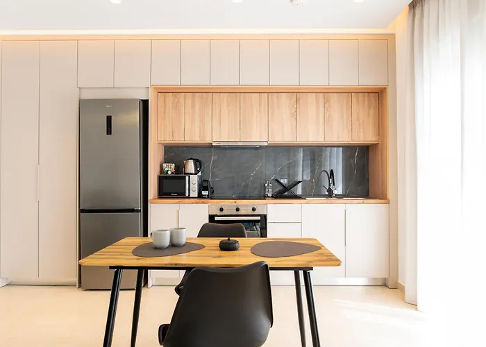 В апартаментах оборудована оснащённая всем необходимым кухня. Возле этого места находится ближайшая автобусная остановка — Triton Hotel.